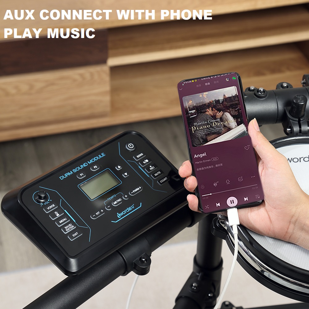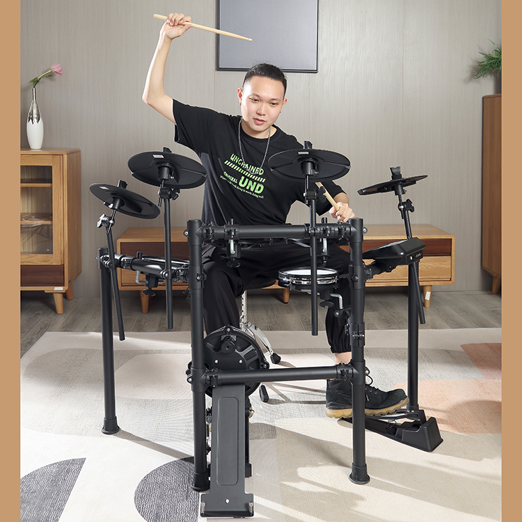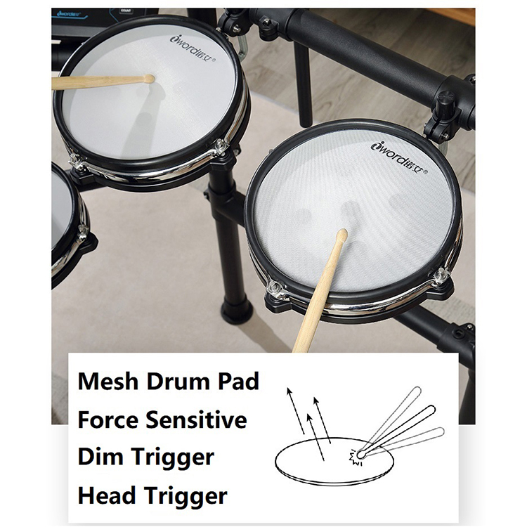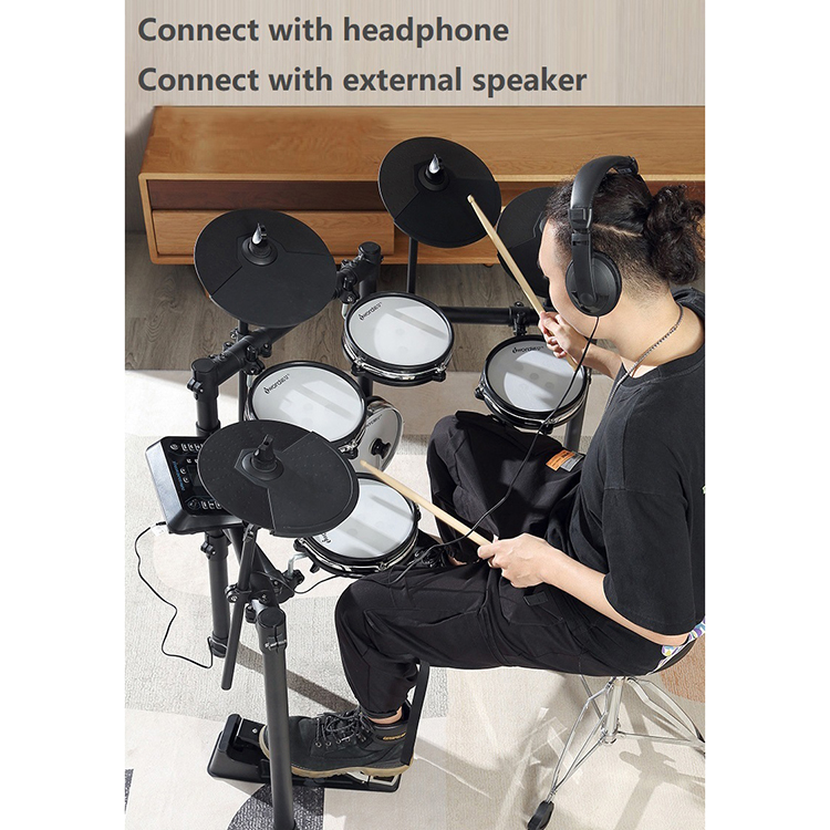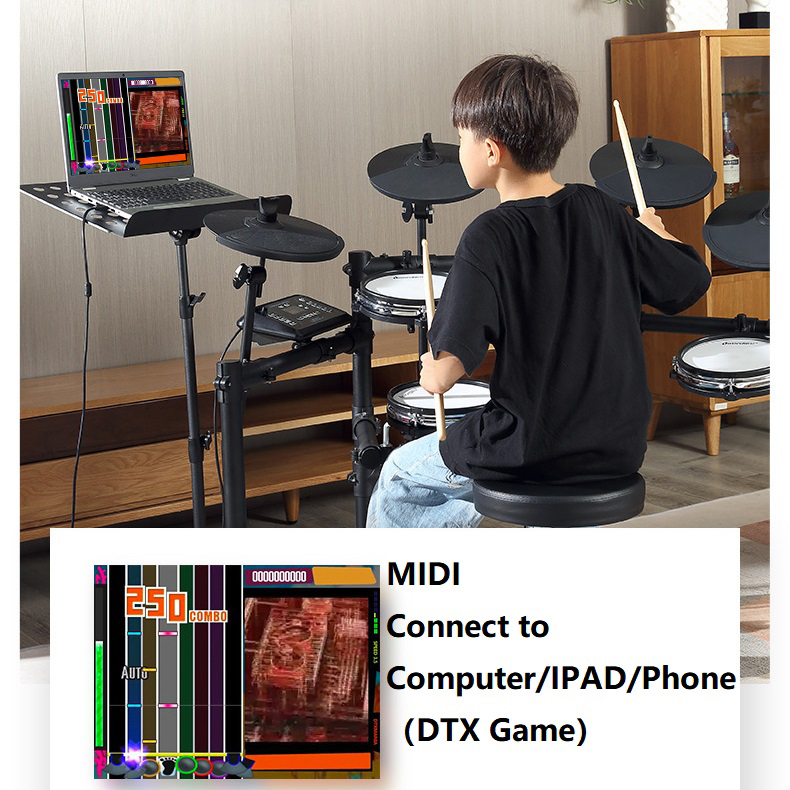 * The sensitivity of snare drum rim and cymbal rim can be adjusted, with MIDI blue and Bluetooth, the host software can be updated by itself